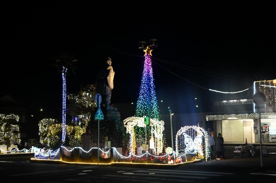美しいイルミネーションも山陽小野田市の魅力の一つ。冬になると、厚狭駅前(写真)など市内各地が幻想的な灯りに包まれる。