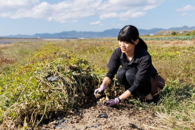 山陽小野田市の観光スポットとして知られる季節体験農場「花の海」への就職がきっかけです。私は幼い頃から自然への興味があり、実家の家庭菜園で父と一緒にピーマンやトマトなどの野菜を作っていました。うまく育たないこともありましたが、その理由を考えたりするのも楽しかったです。将来は農家になりたいと思い、農業系の学部がある広島県内の大学で野菜の栽培について学びました。在学時、農業ボランティアサークルの活動を通して地域の方たちと関わるようになり、「農業をしたい」から、「たくさんの人たちに農業の楽しさを伝えられる人になりたい」と気持ちが徐々に変化していきました。そこで、就職活動も農業に携る仕事に絞って行うことに。農業関連の企業が集まる合同説明会で出会ったのが「花の海」です。